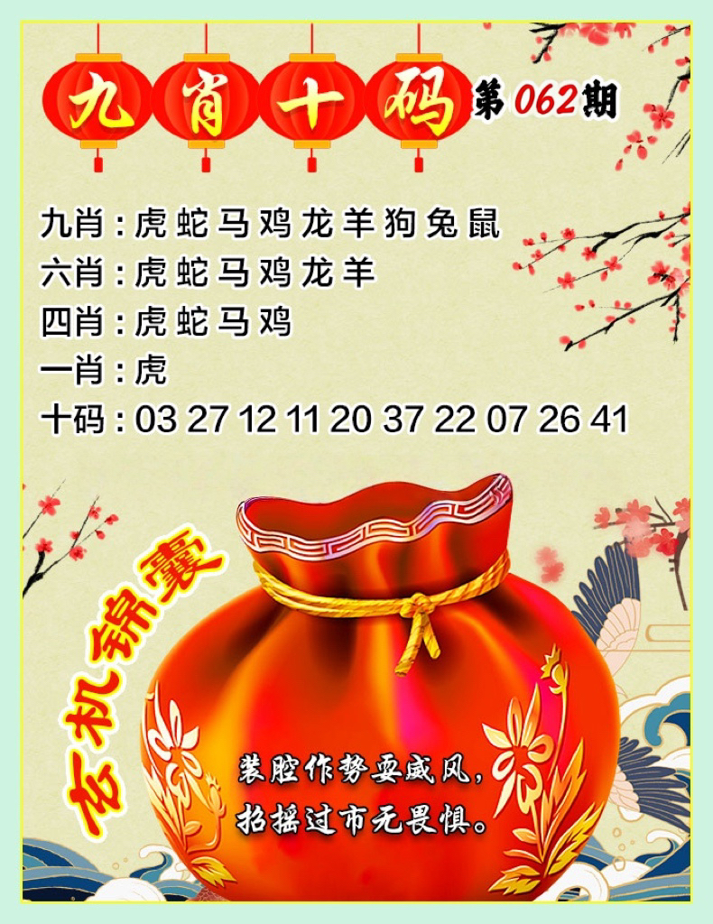 | 062期:绝杀三肖【猪马虎】开09狗 |